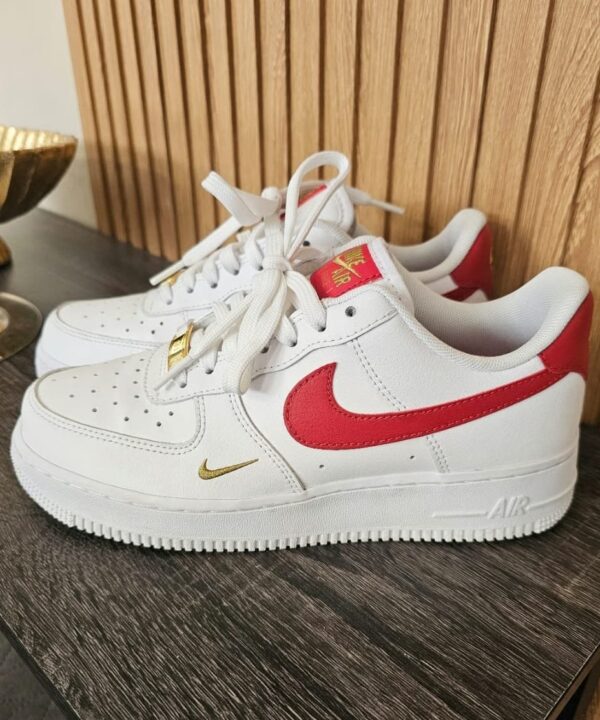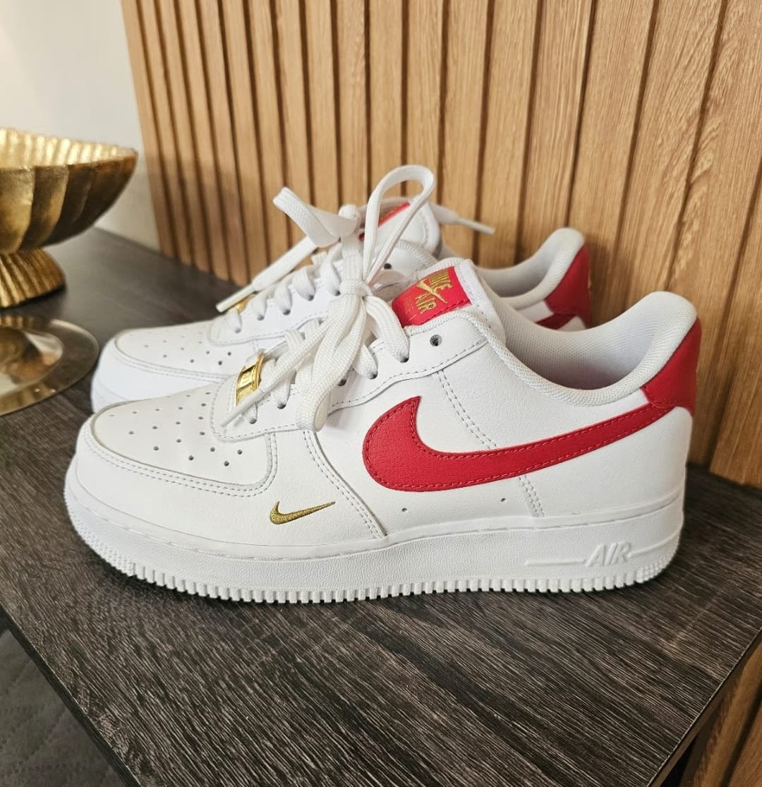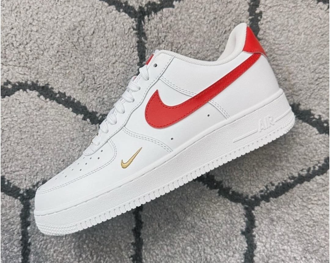 Step up your sneaker game with the legendary NK Air Force 1 Low – Red Swoosh Special Edition. These kicks blend classic design with modern flair, featuring a bold red Swoosh and a unique gold mini Swoosh detail that sets them apart from the crowd.