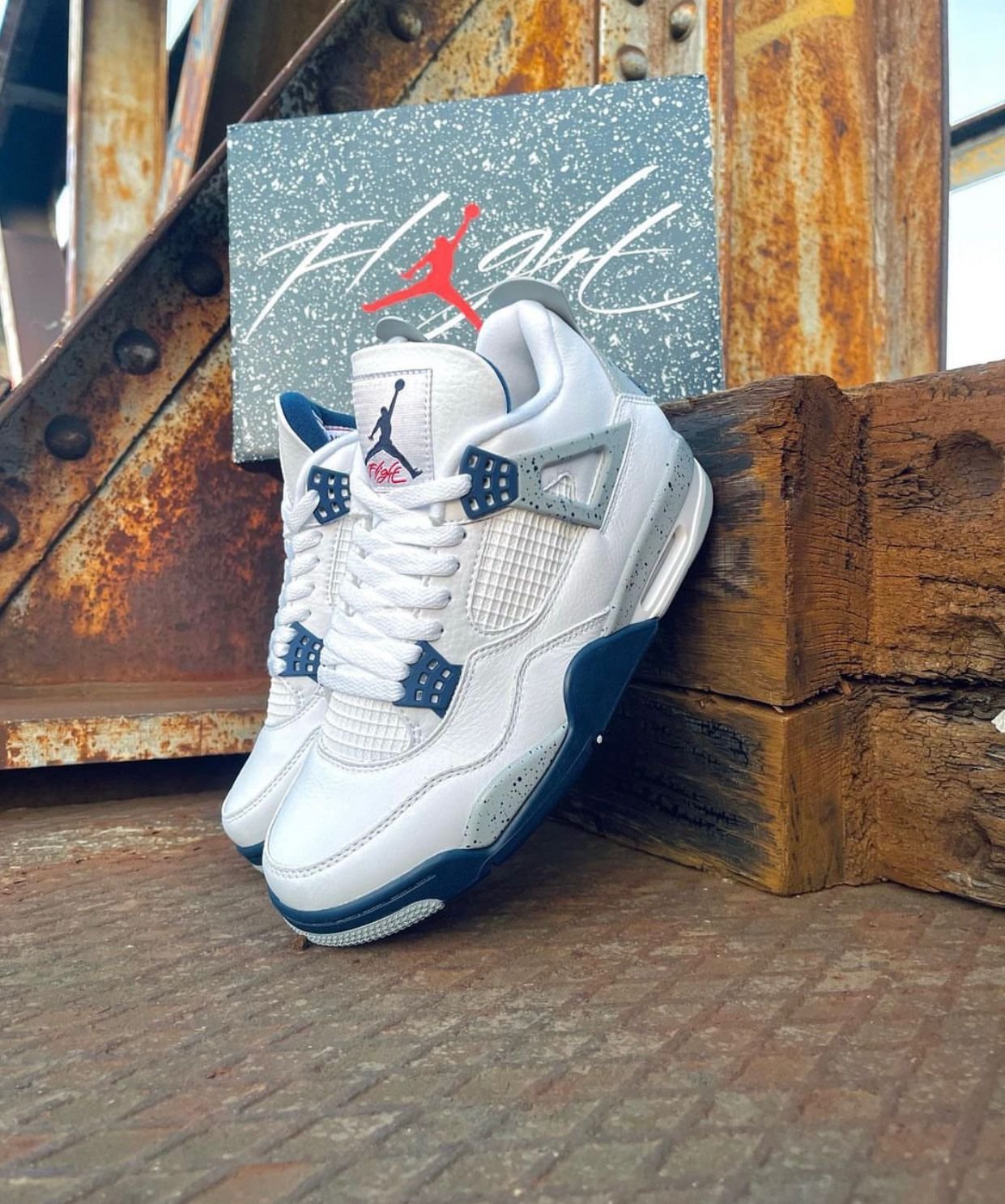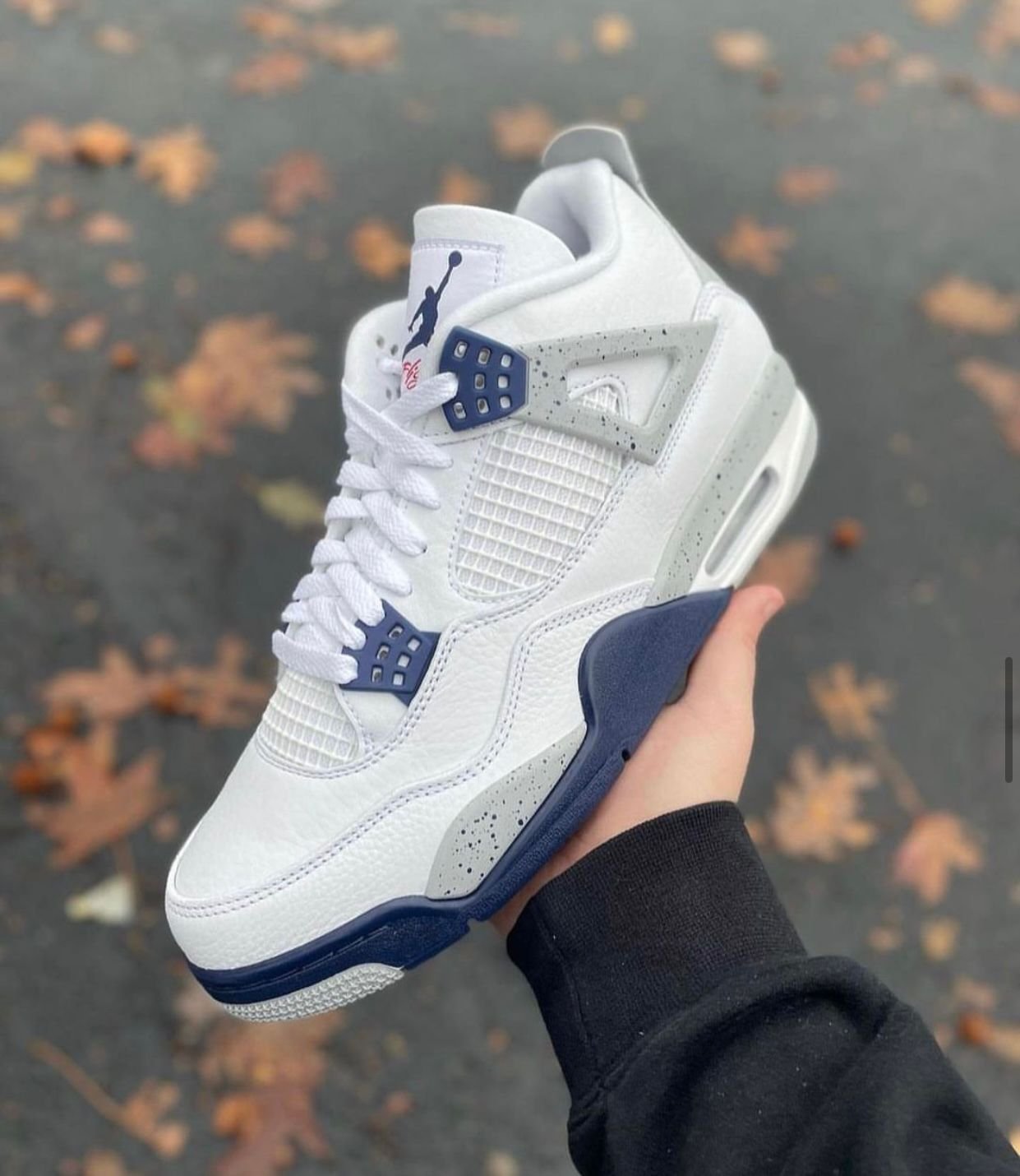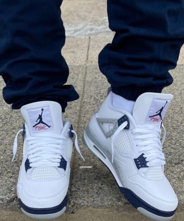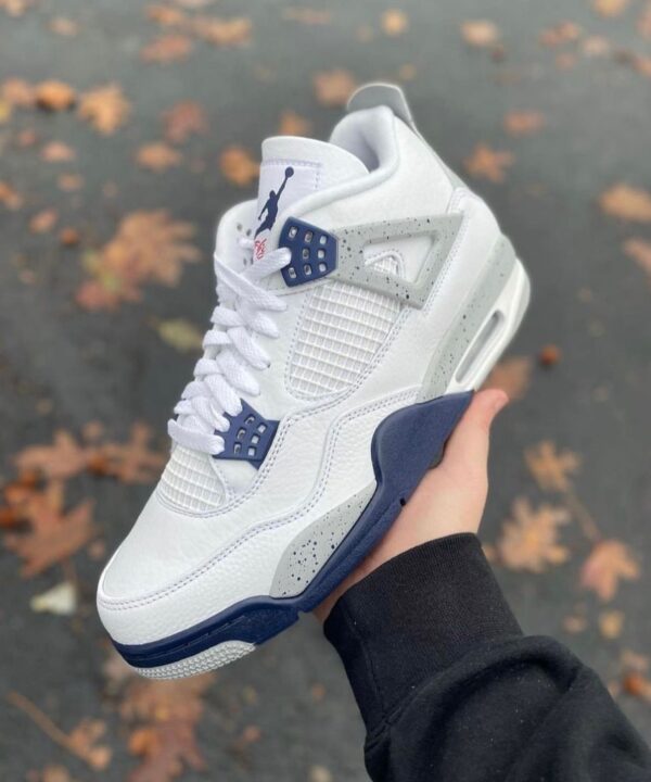 Crafted with top-tier materials and premium finish, this pair blends legendary design with a fresh navy and white colorway that never goes out of style. Perfect for sneakerheads who want that classic AJ4 silhouette with a touch of modern class.