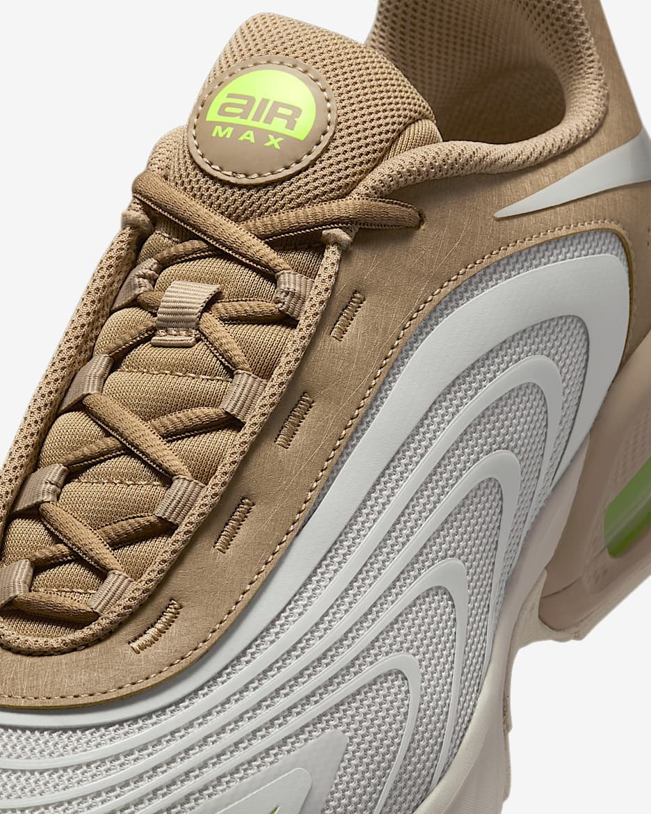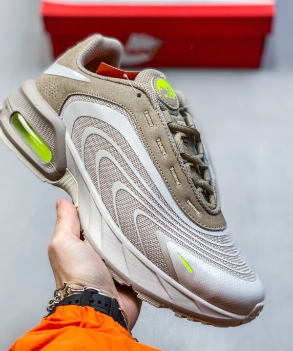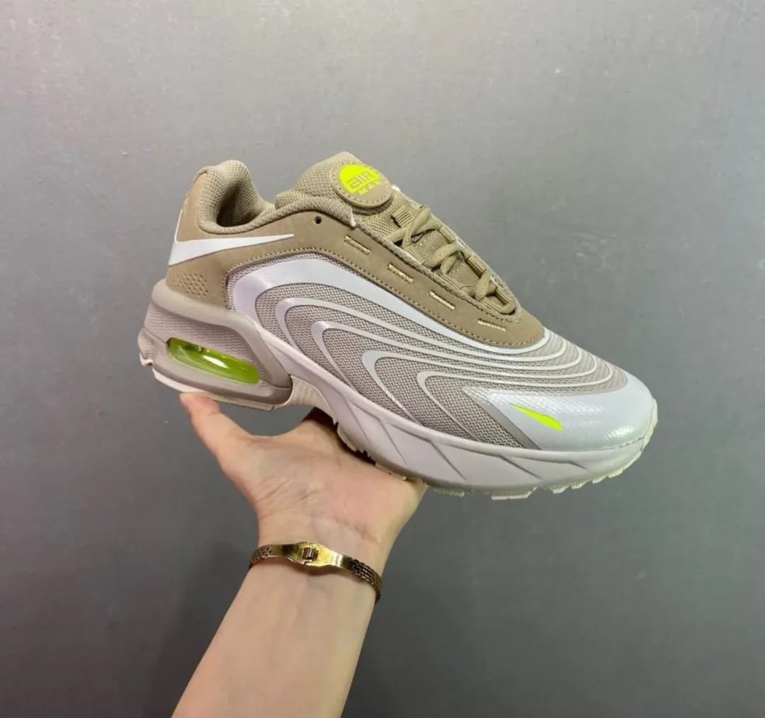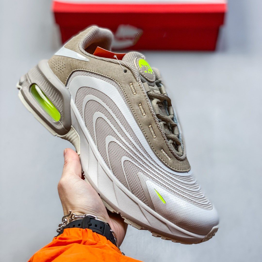 Step up your style with the NK Air Max 97 Fire, a premium-quality sneaker designed for both comfort and fashion. Combining futuristic design with classic elements, this shoe is perfect for everyday wear or a sporty look with a hint of sophistication. Featuring a sleek desert sand and silver colorway, the signature Air Max cushioning ensures your feet stay comfortable, while the eye-catching green Nk Swoosh adds a pop of color.