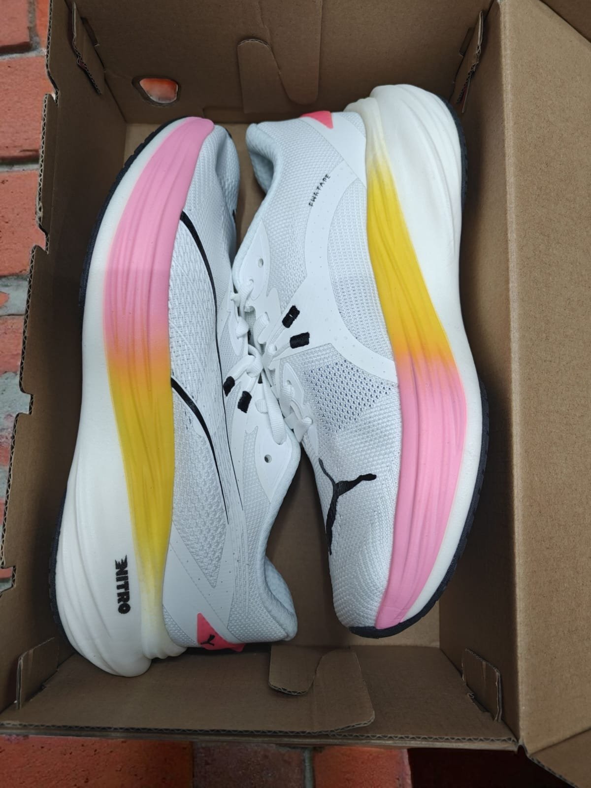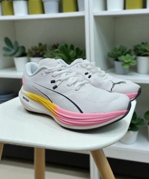 Sole Power: Features a bold gradient NITRO foam sole in yellow and pink for lightweight cushioning and explosive energy return.